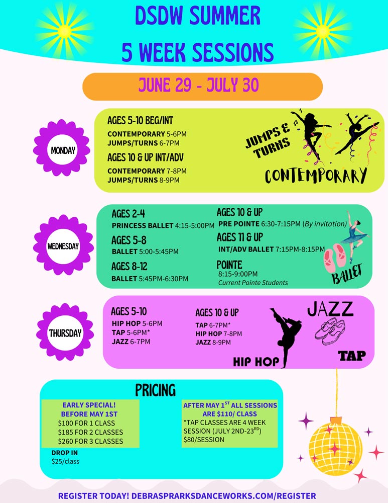 Keep dancing all summer long in all styles with your favorite teachers!